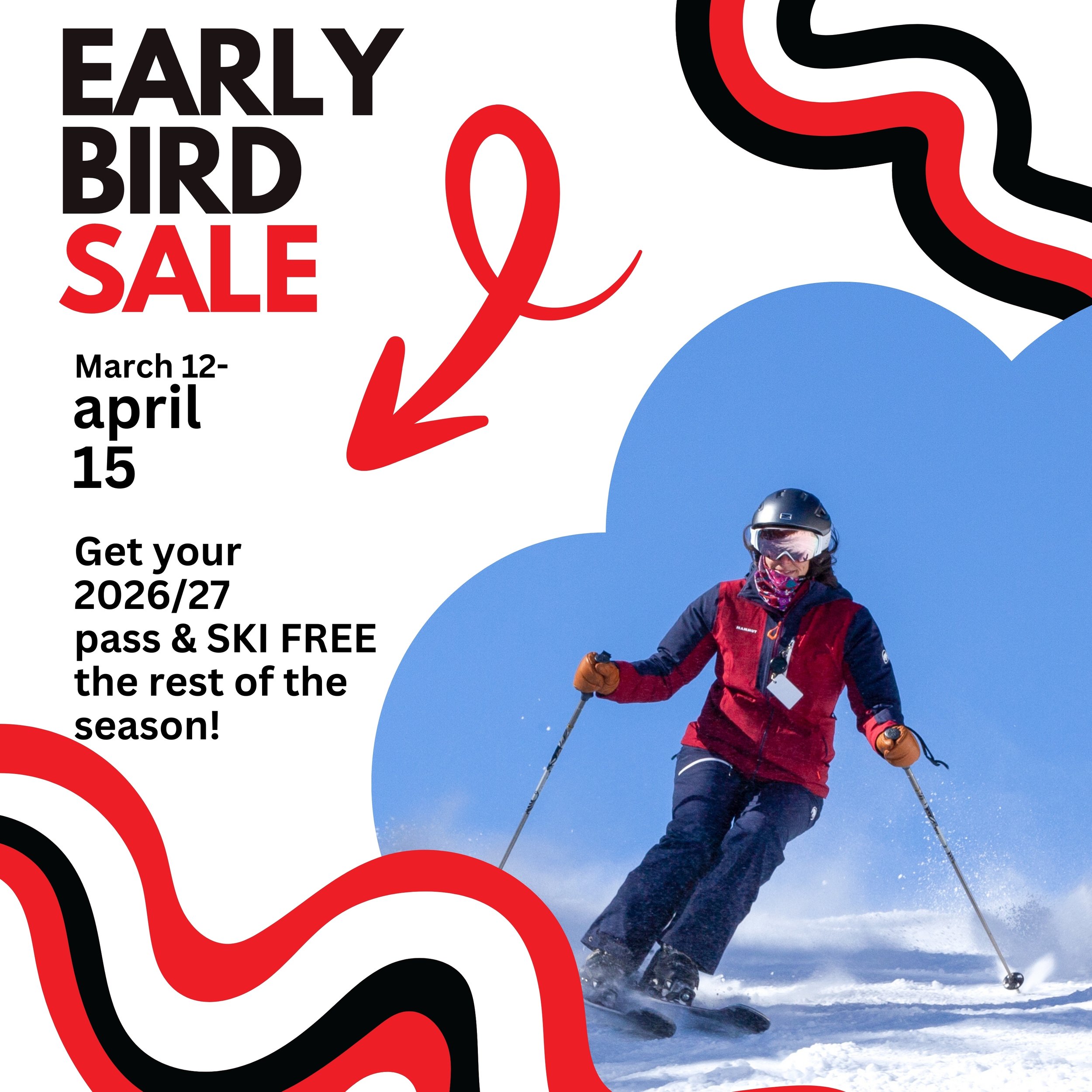 Buy your 2026-27 season pass before April 15th...save big & ski FREE the rest of the season, plus get 2 FREE buddy passes